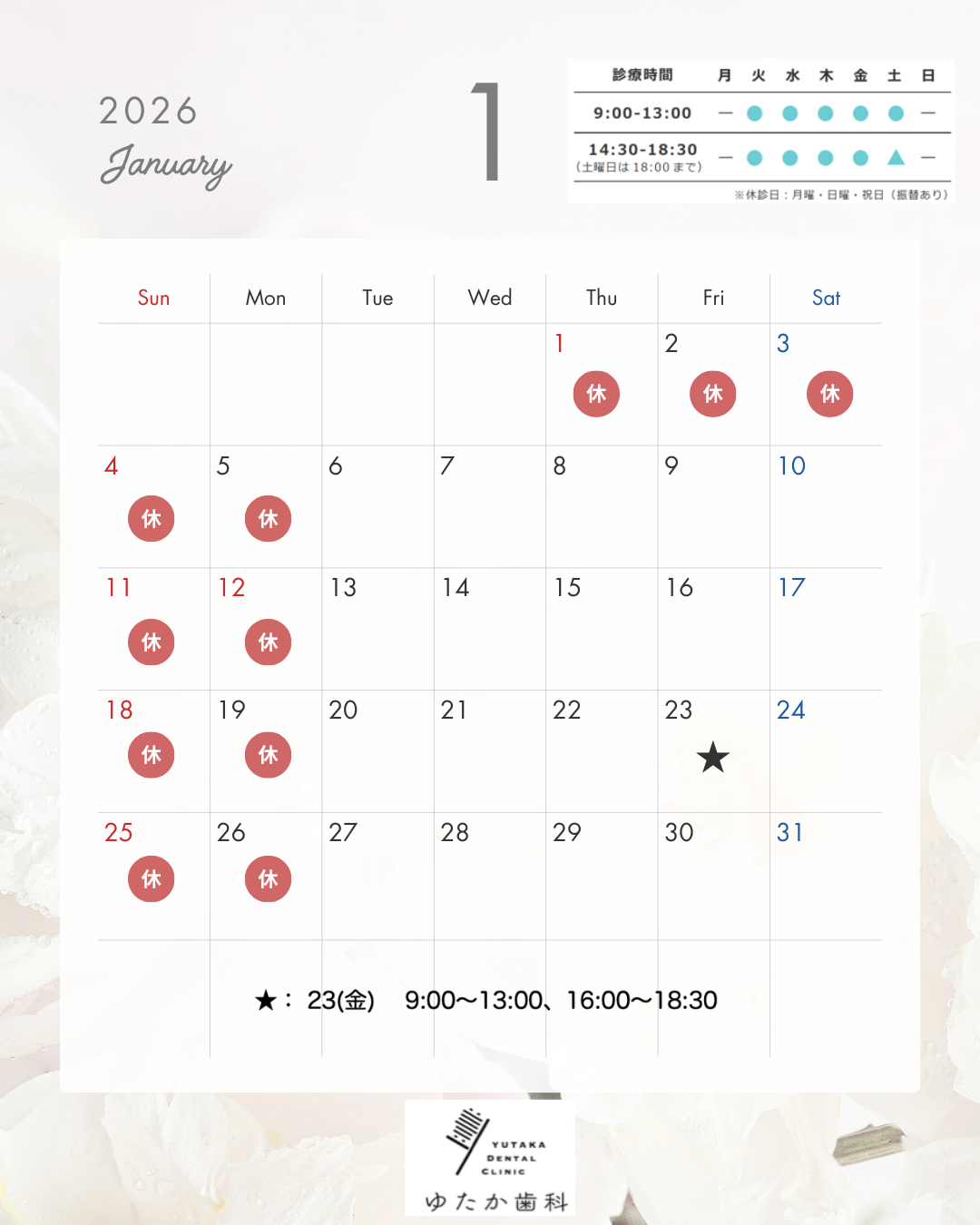 1月の休診日のお知らせです。