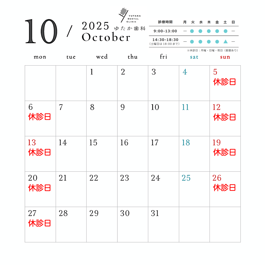 10月は通常通り診療いたします。よろしくお願いいたします。